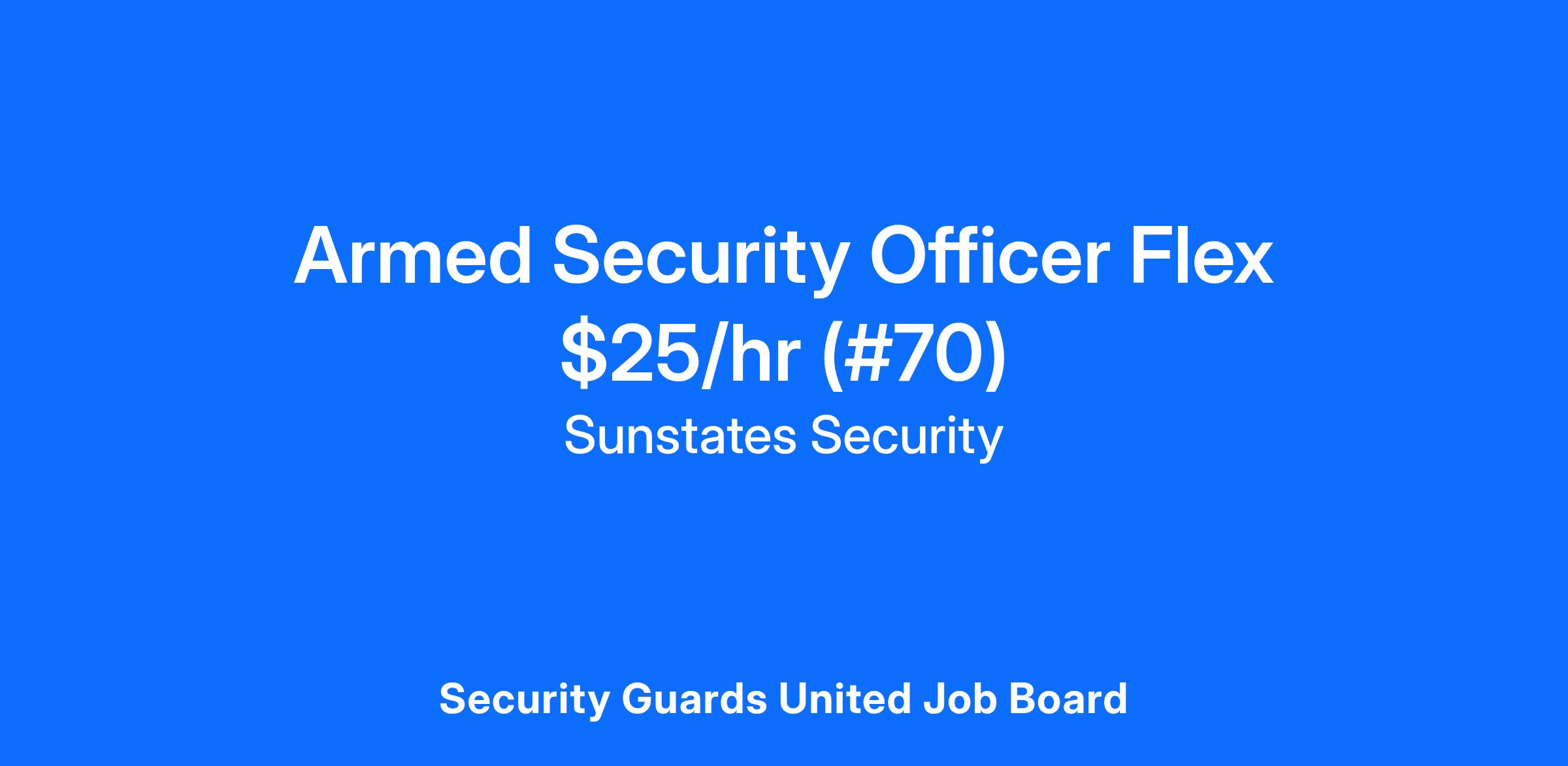 Sunstates Security is currently hiring Armed, Flex Security Officers to work in the Austin, TX area. These positions are for All Shifts and offers a pay rate of $25.00/hr, paid weekly.