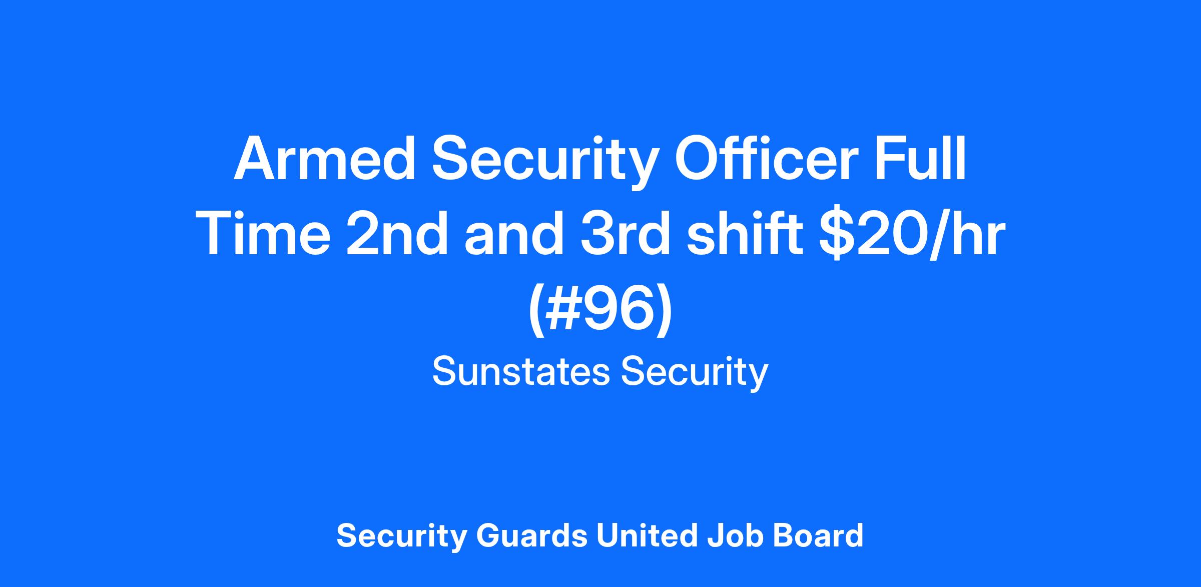 Sunstates Security is hiring for Full-Time, Armed, Security Officers in the Stroud, OK area. The position is for the 2nd and 3rd shift, and the position offers a pay rate of $20.00/hr, paid weekly.