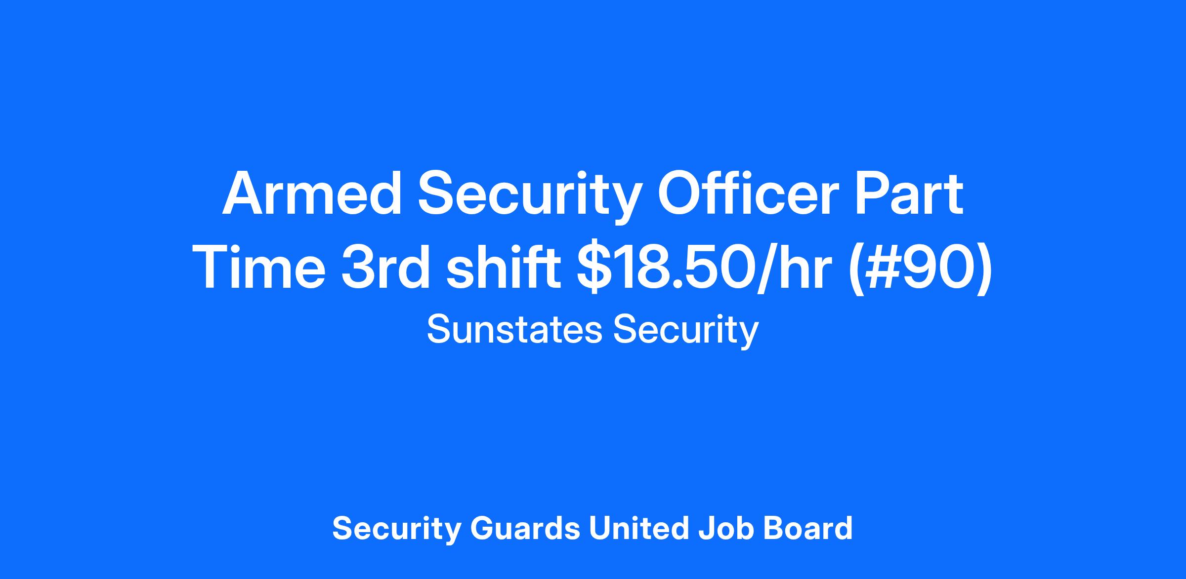 Sunstates Security is currently hiring Part-Time Armed Security Officers for 3rd shift in the Richmond, TX area. This position offers a pay rate of $18.50/hr, paid weekly.