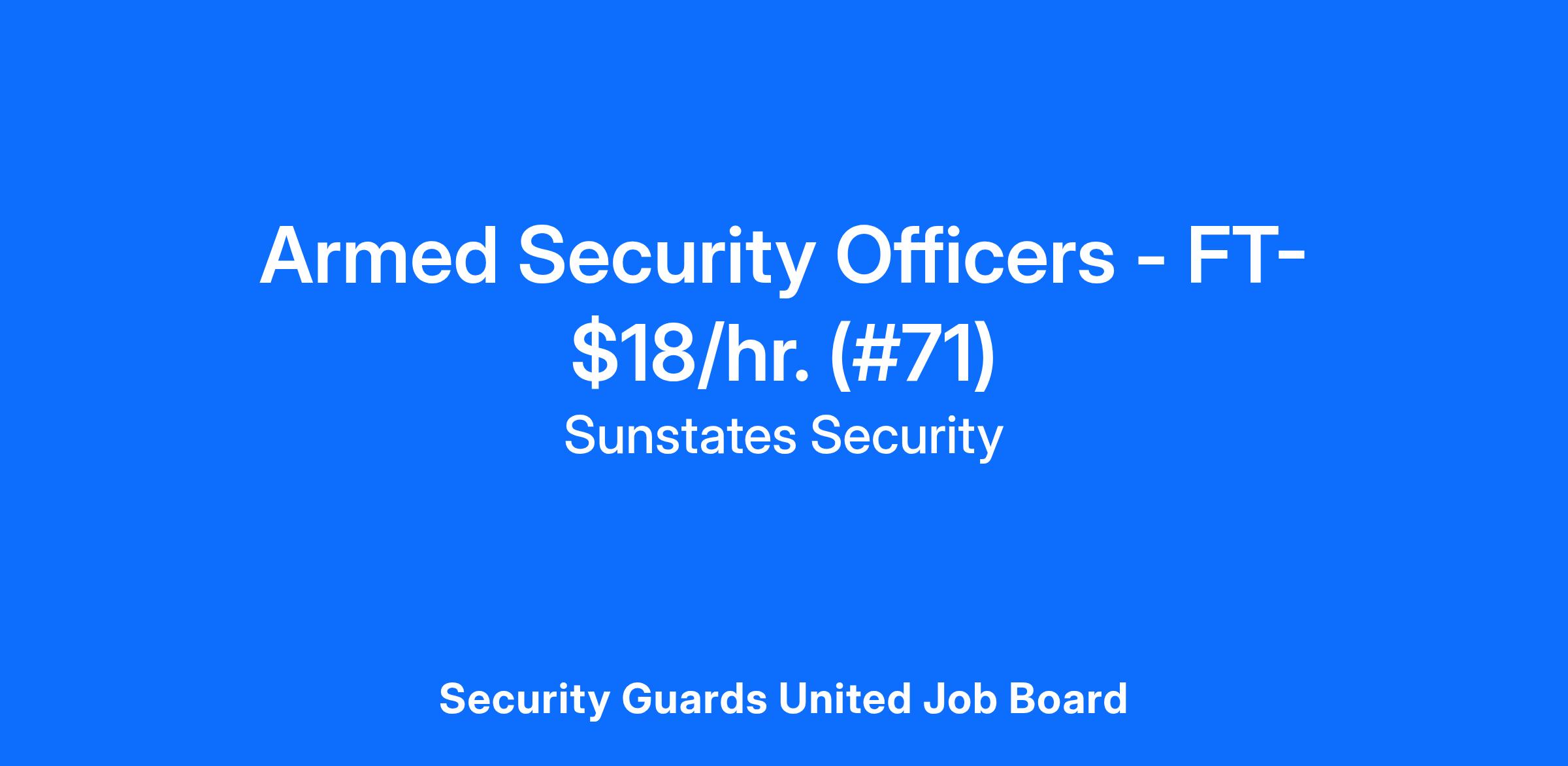 Sunstates Security is currently hiring Full-Time Armed Security Officers to join our team in the Tamarac area. This position is for a jewelry manufacturing plant, and we are seeking reliable, professional, and vigilant candidates.
