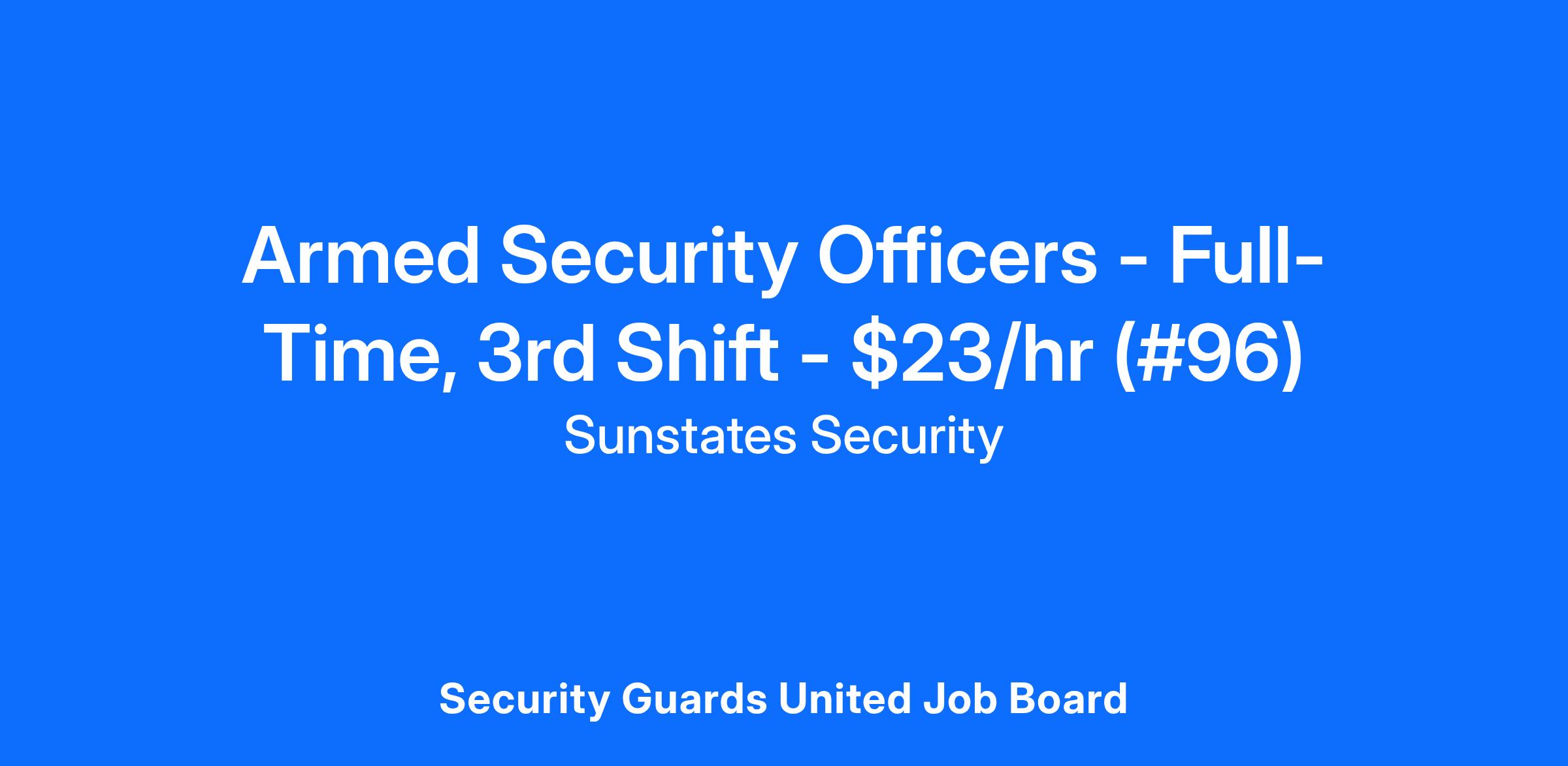 Sunstates Security is currently hiring Full-Time, 3rd Shift, Armed Security Officers in the Irving, TX 75039 area. These positions offer a starting pay range of $23/hr and up, paid weekly.