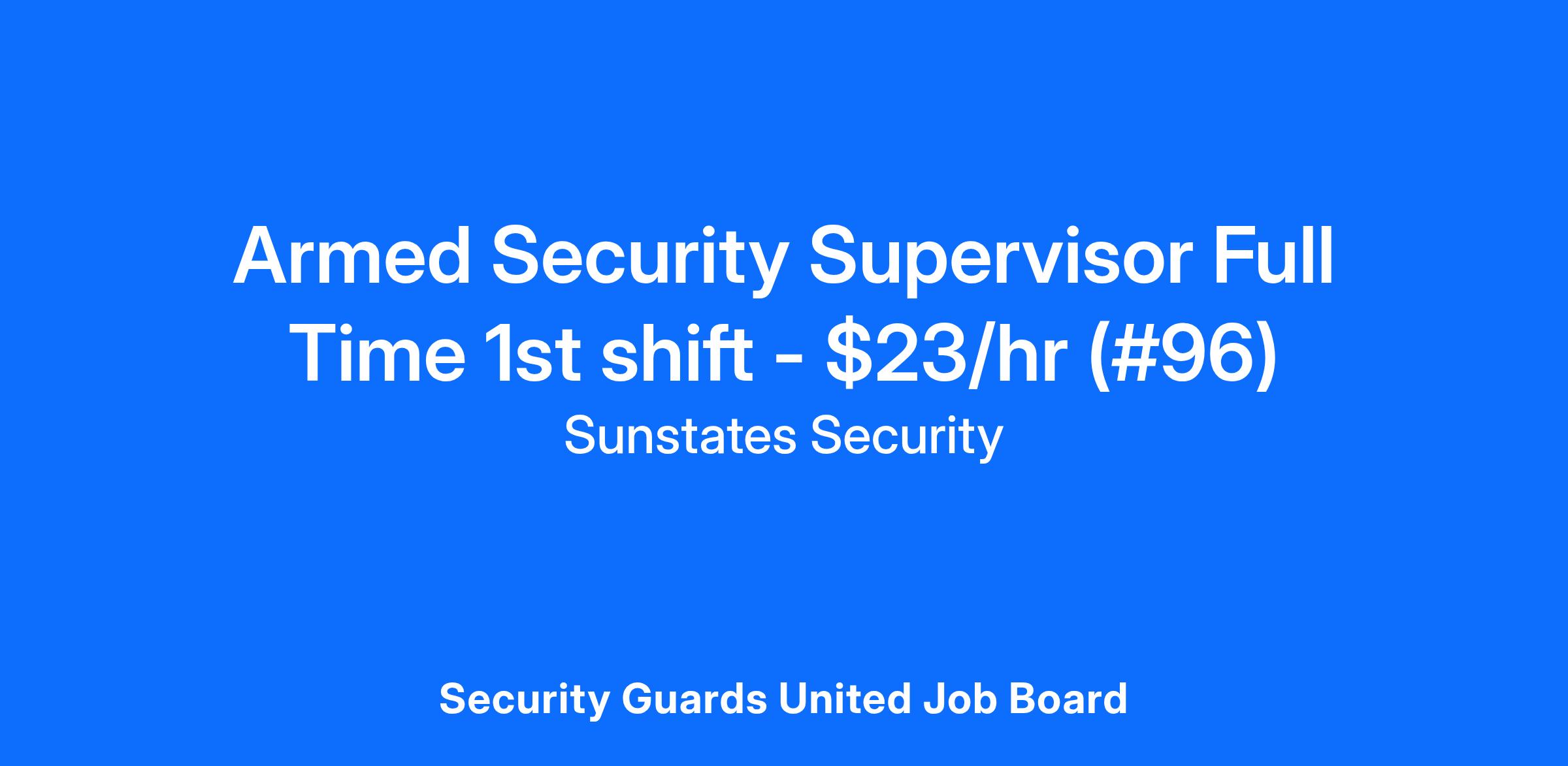 Sunstates Security is hiring for Full-Time, Armed, Security Site Supervisor in the Stroud, OK area. The position is for the 1st shift, and the position offers a pay rate of $23.00/hr, paid weekly.
