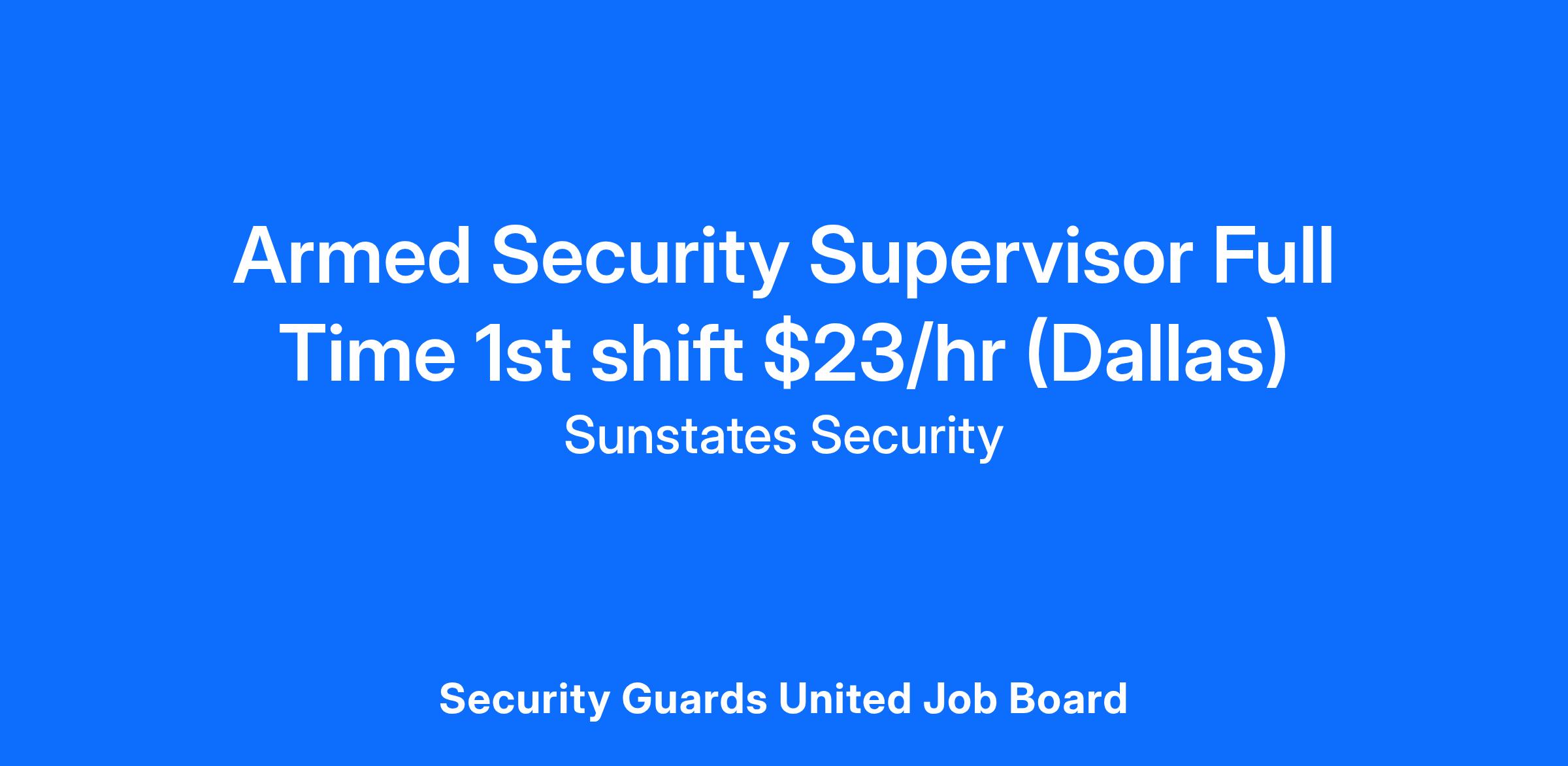 Sunstates Security is hiring for Full-Time, Armed, Security Site Supervisor in the Stroud, OK area. The position is for the 1st shift, and the position offers a pay rate of $23.00/hr, paid weekly.
