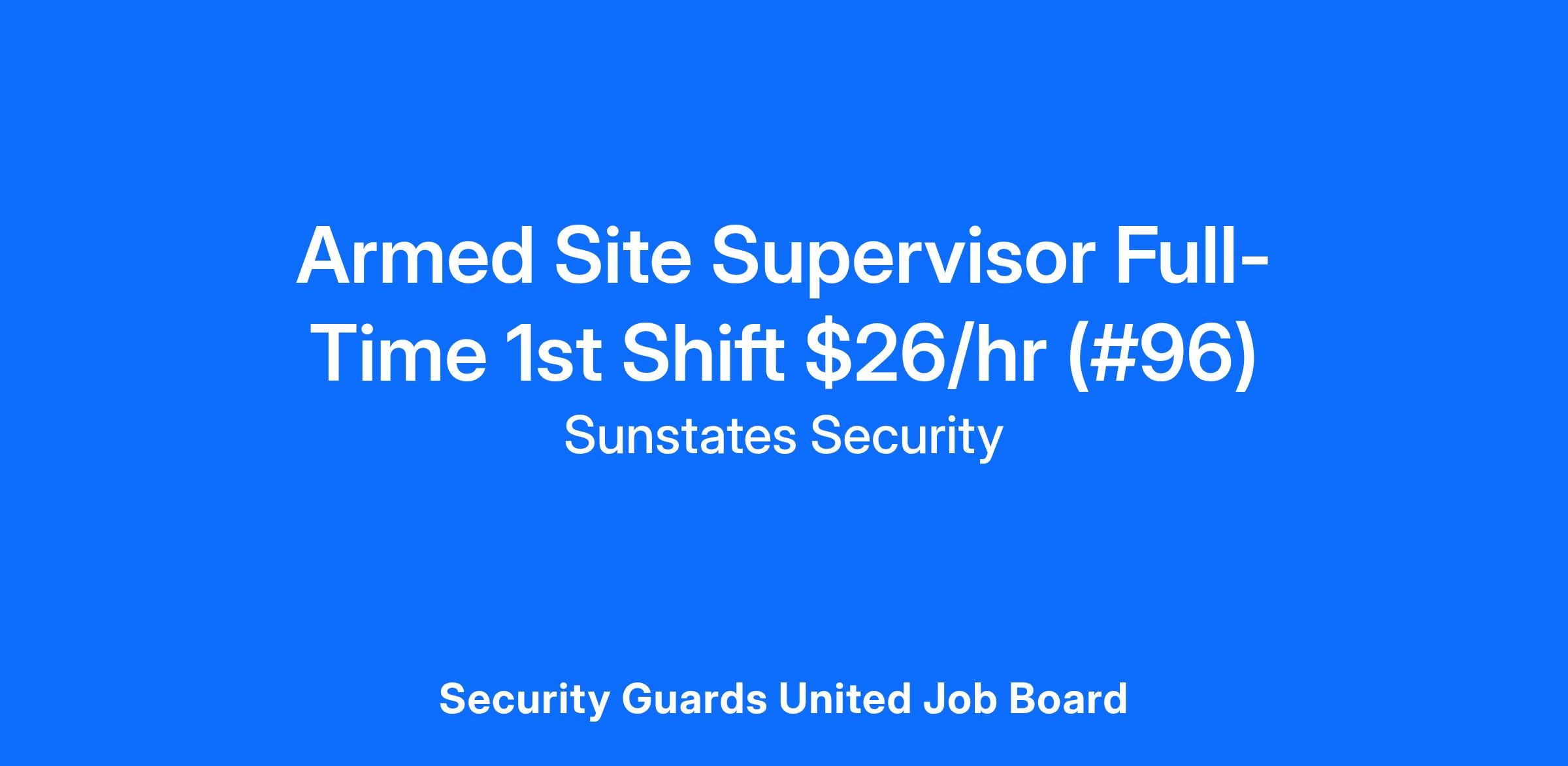 Sunstates Security is currently hiring an Armed Site Supervisor in the Irving, TX 75039 area. This position is Full Time, 1st shift, and offers a pay rate of $26/hr, paid weekly.