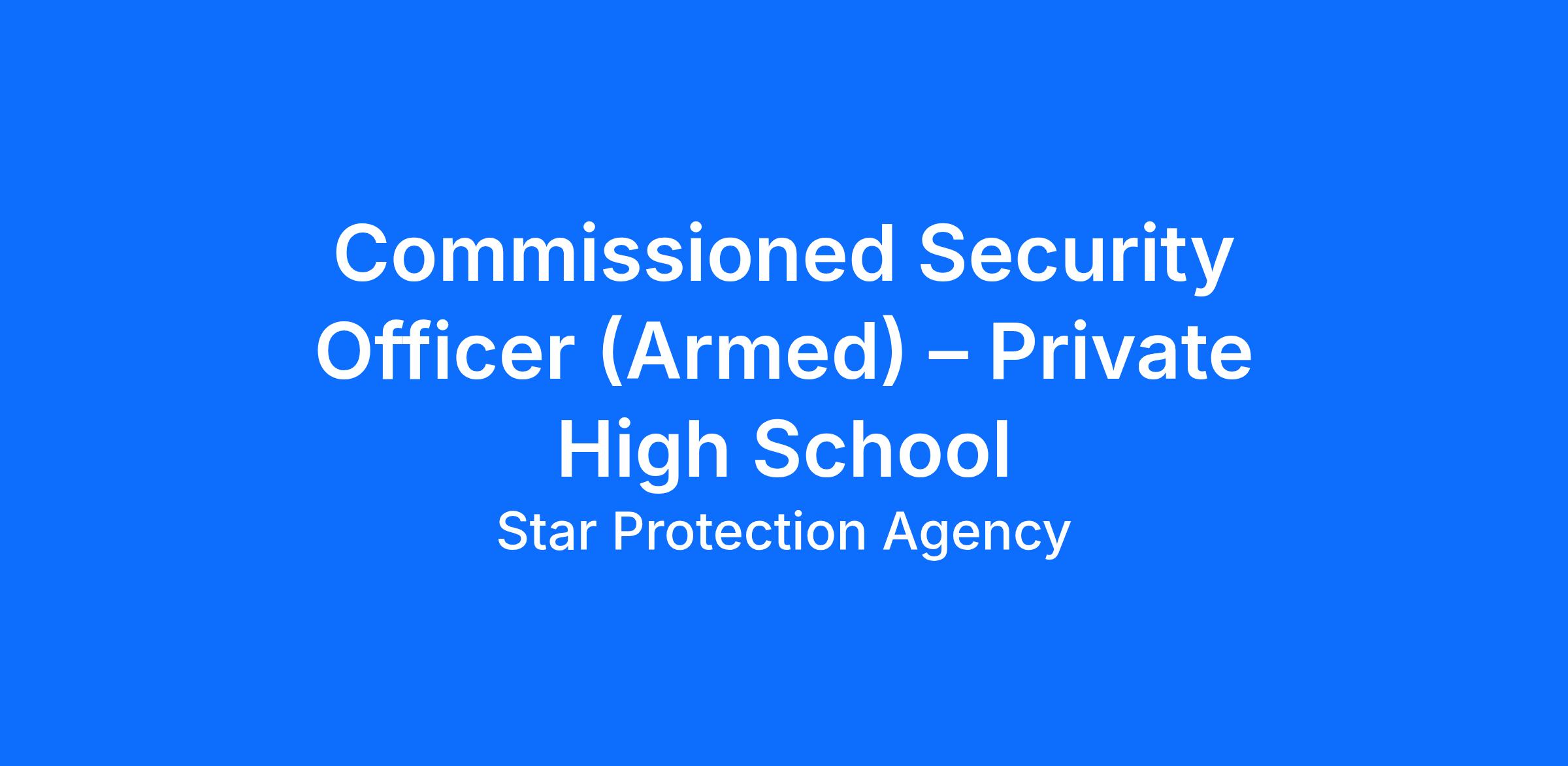 We are seeking a professional, dependable, and highly observant Commissioned Security Officer (Armed) to provide safety and security services at a private high school campus. The ideal candidate will have prior experience working in a school environment and will be committed to maintaining a secure atmosphere for students, faculty, staff, and visitors.