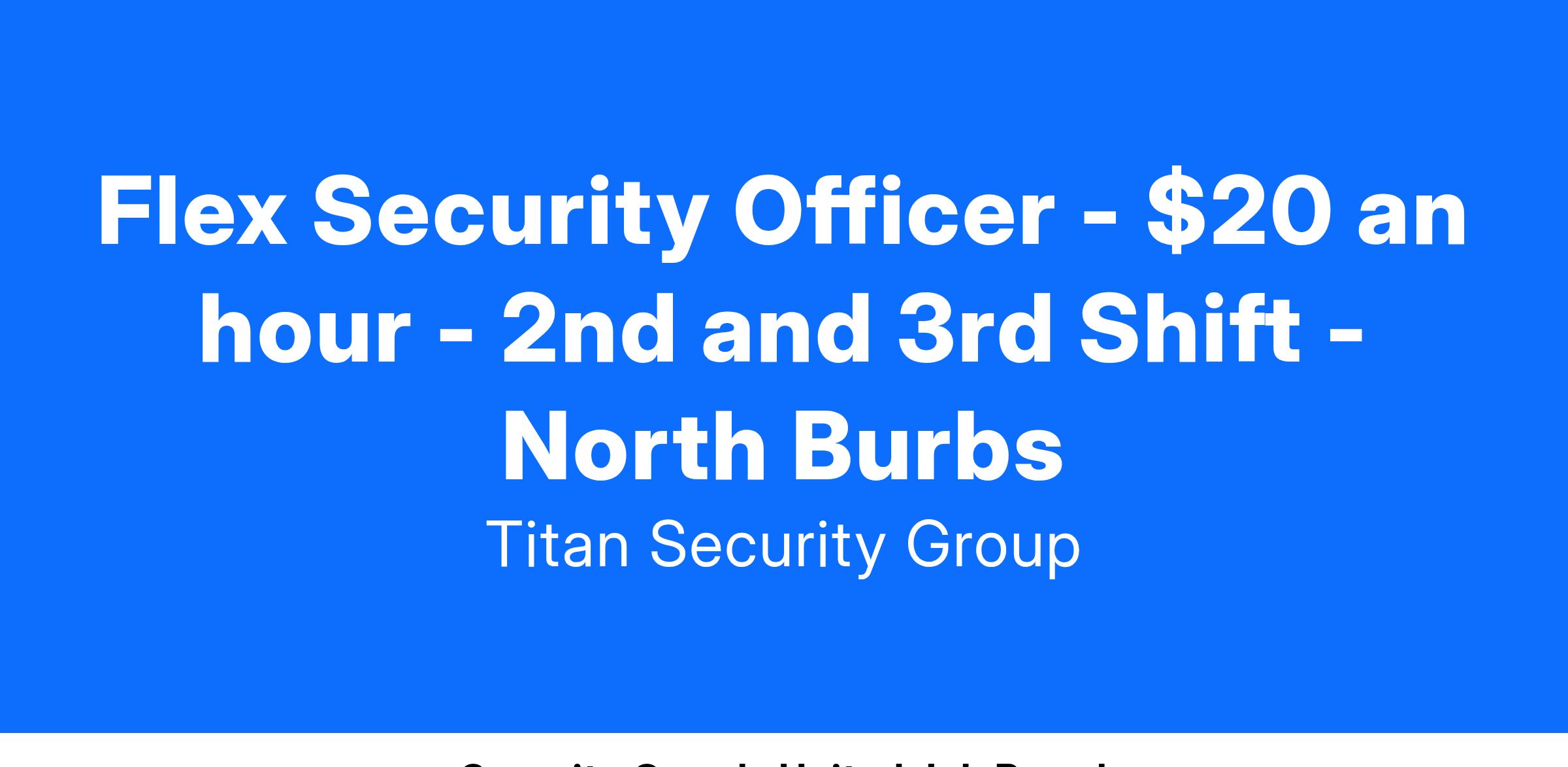 We are hiring immediately for Unarmed Security Officers to work as Flex Security Officers at various locations throughout the North and Northwest subburbs of Chicago. Ideal candidates will have availability for both 2nd and 3rd shift because schedules can and do change over time, and you will be needed to cover for call-offs or other issues. Titan will, however, make every effort to provide adequate notice of schedule changes.
