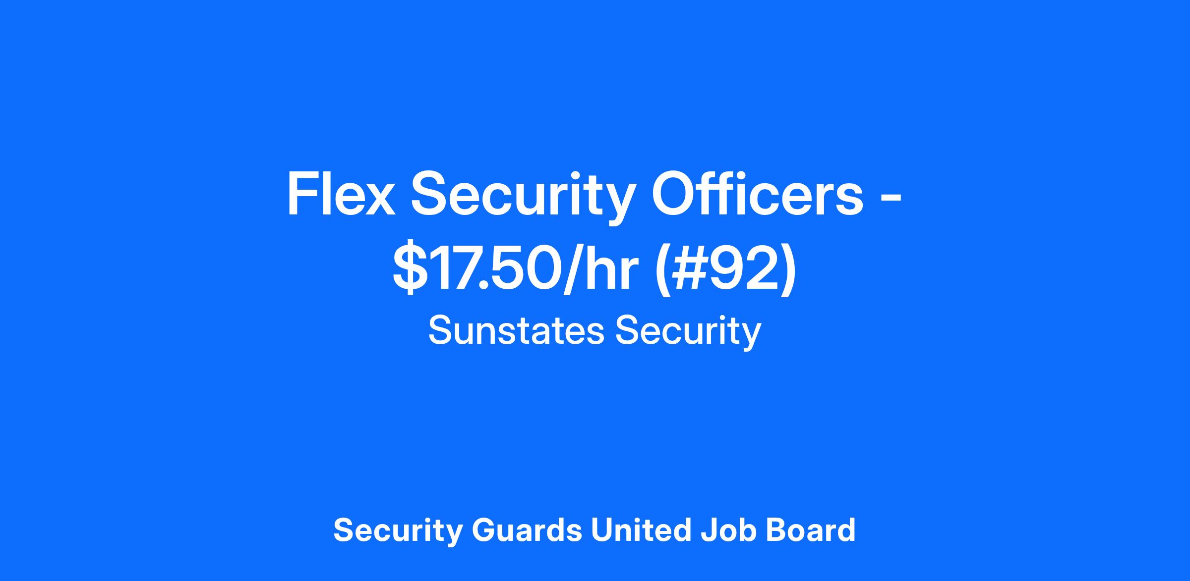 Sunstates Security is currently hiring for Flex Security Officers in the Knoxville, TN area. This position offers a pay rate of $17.50/hr - with weekly pay.