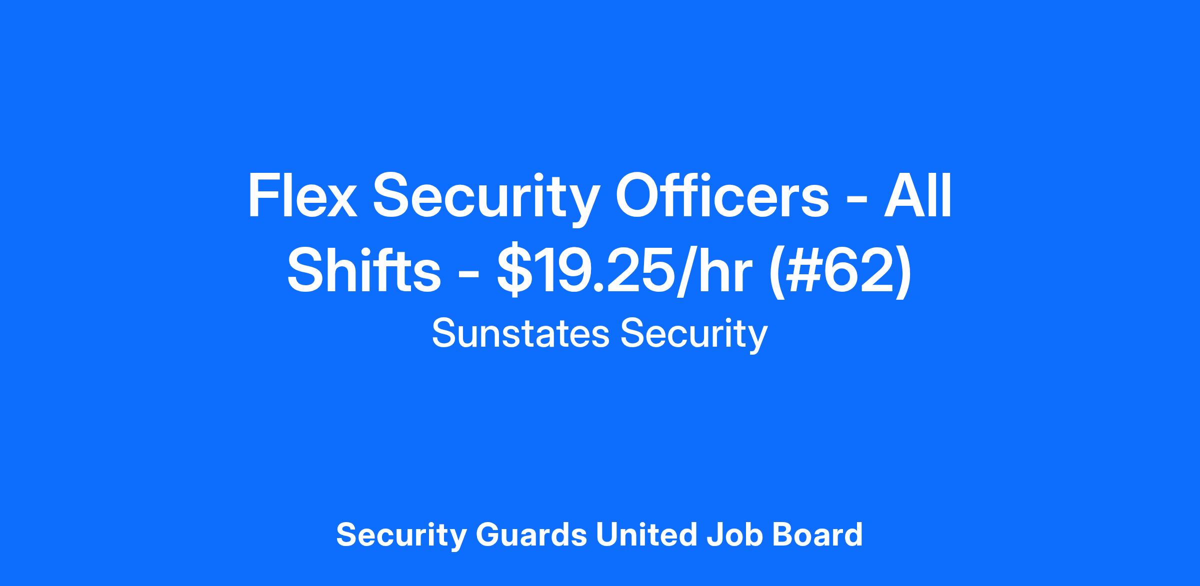 Sunstates Security is hiring Flex Security Officers for a client site in Aurora, IL. This position offers a pay rate of $19.25/hr, paid weekly. All shifts are available!