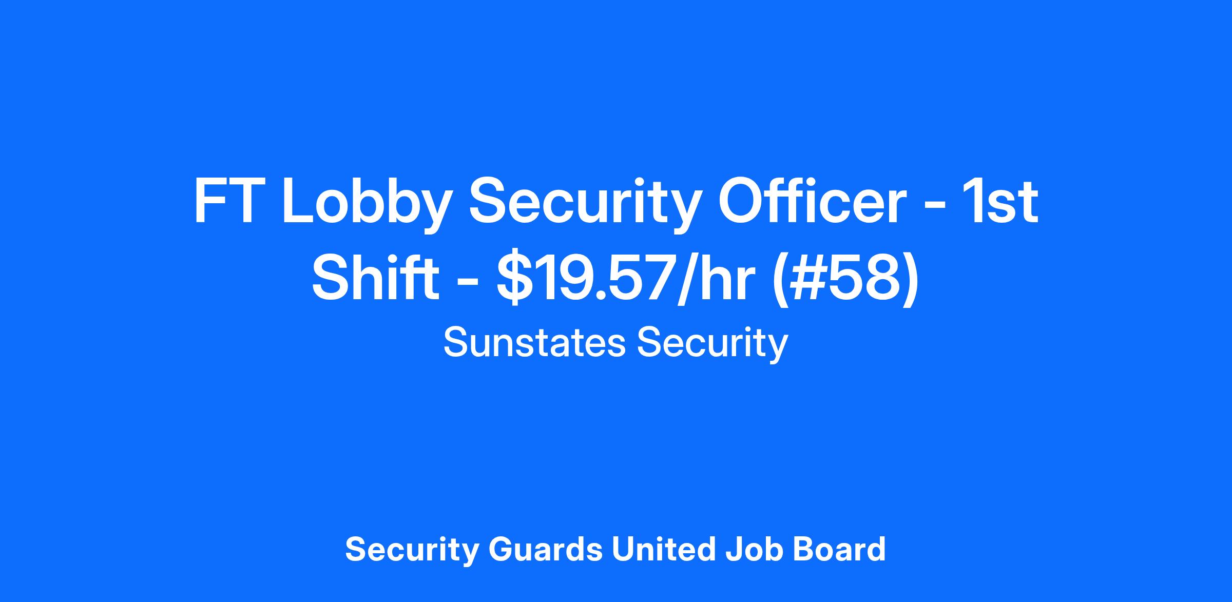 Sunstates Security is hiring Full-Time Lobby Security Officers in St. Louis, MO to work 1st shift. These positions offer a pay rate of $19.57/hr - paid weekly.