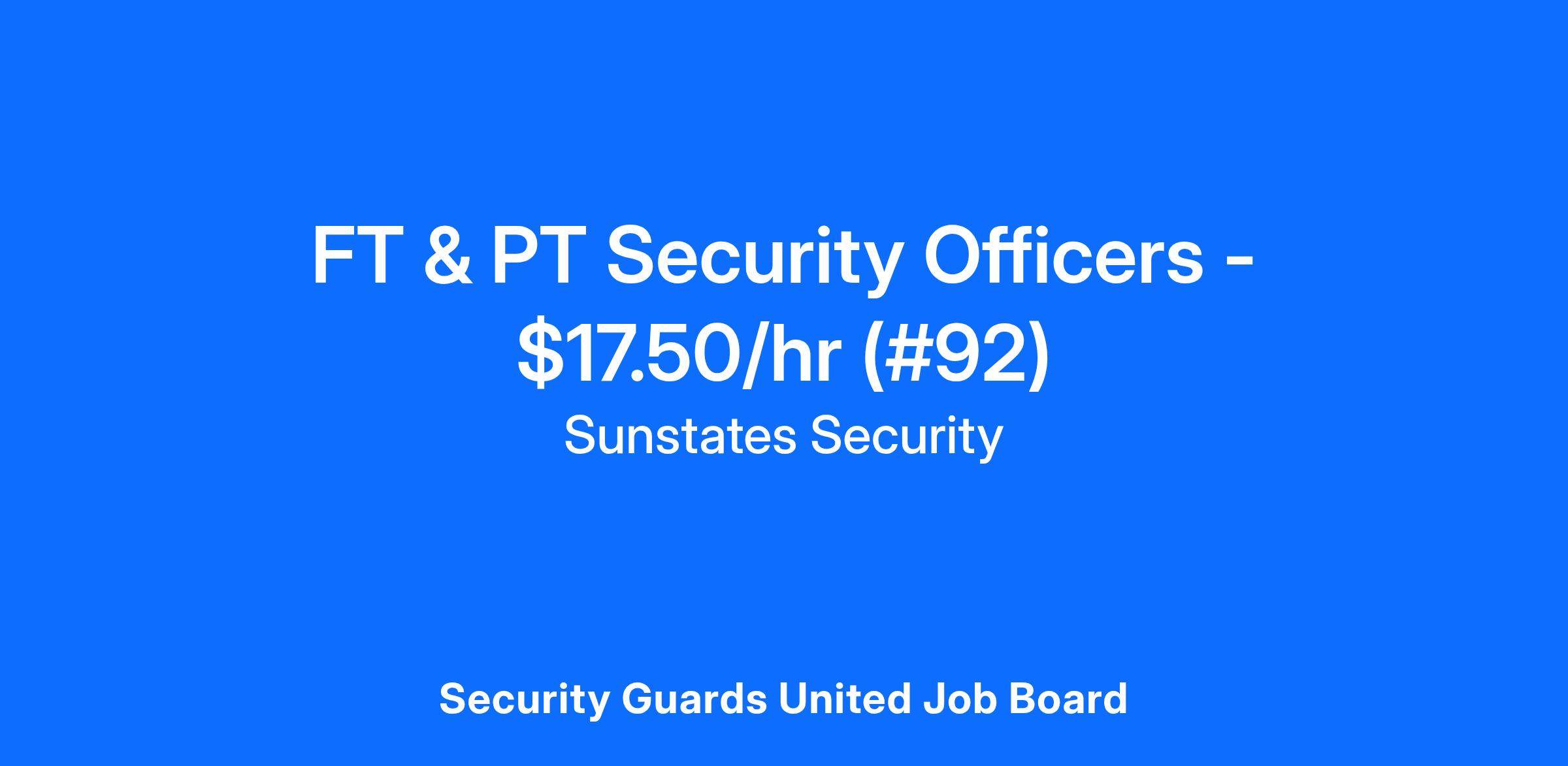Sunstates Security is currently hiring for a Full-Time and Part-Time Security Officer in the Knoxville, TN area. This position offers a pay rate of $17.50/hr - with weekly pay.