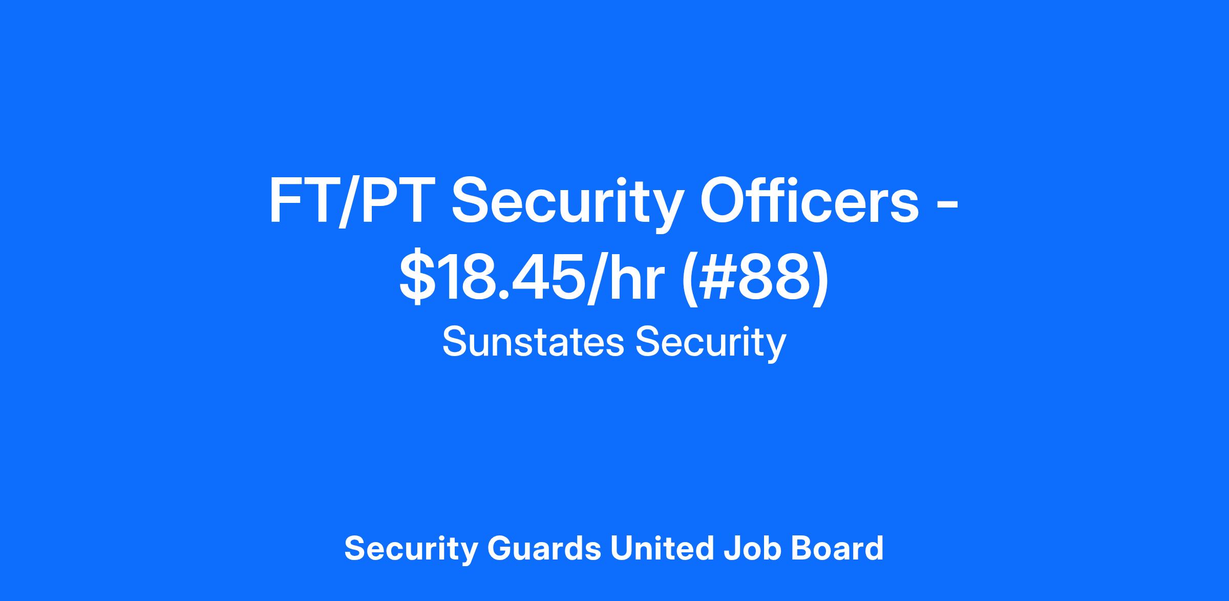Sunstates Security is hiring Full-Time and Part-Time Security Officers for ALL shifts in the Kansas City, Kansas area. These positions offer a pay rate of $18.45/hr, paid weekly.