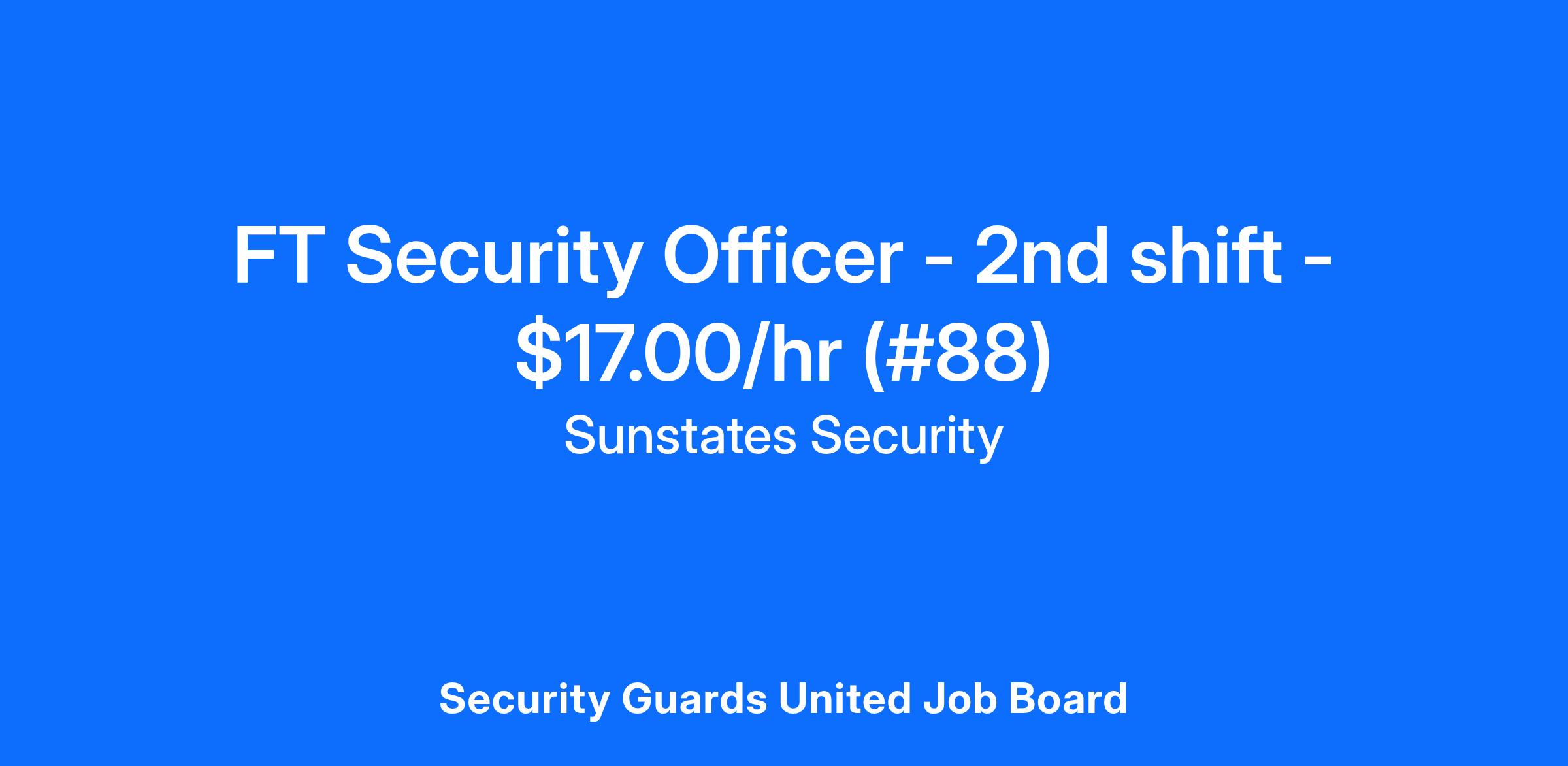 Sunstates Security is hiring a Full-Time Security Officer in the Hutchinson, Kansas area. We are offering a pay rate of $17.00/hr, paid weekly.