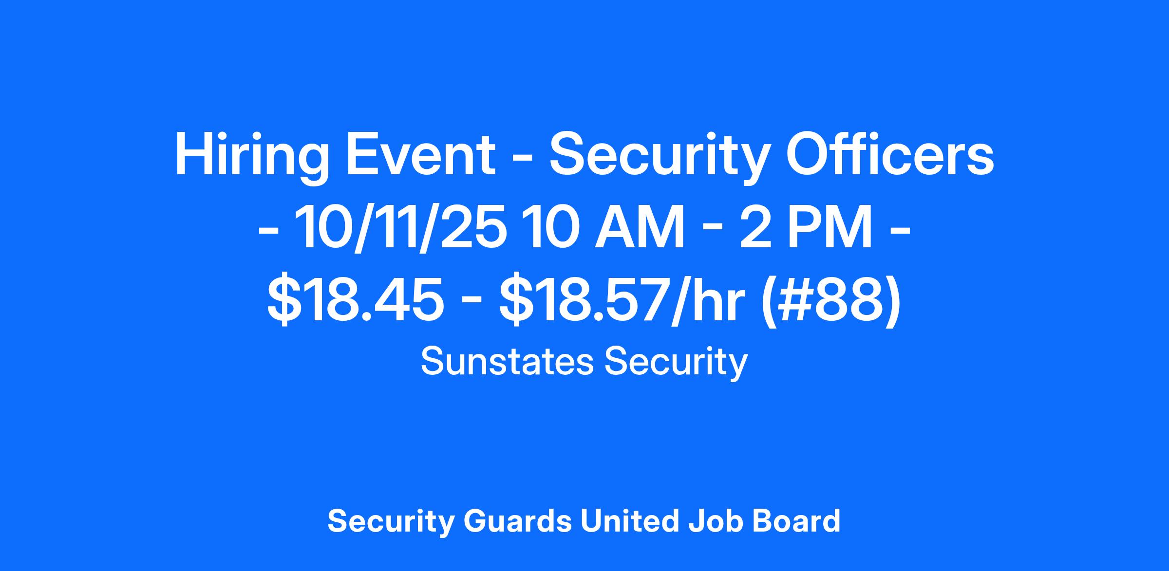 Sunstates Security is hosting a Hiring Event for Security Officers on Saturday, October 11th, from 10:00 AM - 2:00 PM.