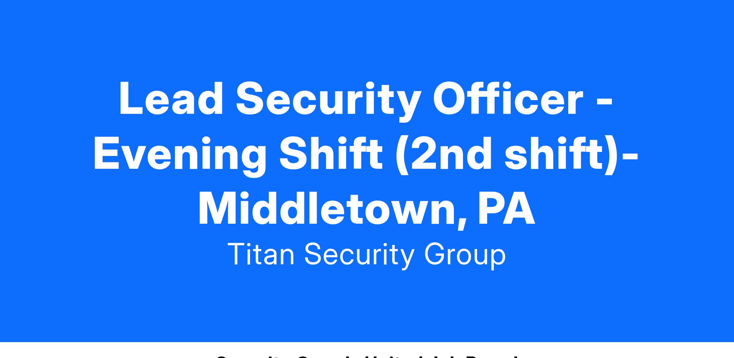 We are hiring immediately for Unarmed Lead Security Officers to work 2nd Shifts at our site in Middletown, PA