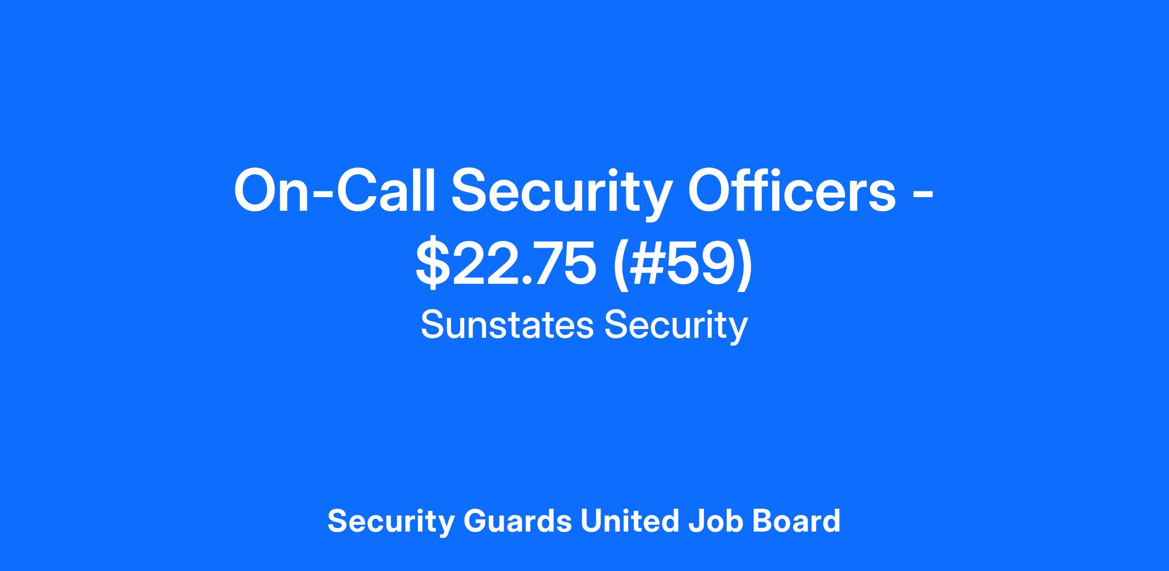Sunstates Security is hiring an On-Call Security Officers in Salem, OR. The pay rate for these positions is $22.75/hr - paid weekly. All days and shifts are available..