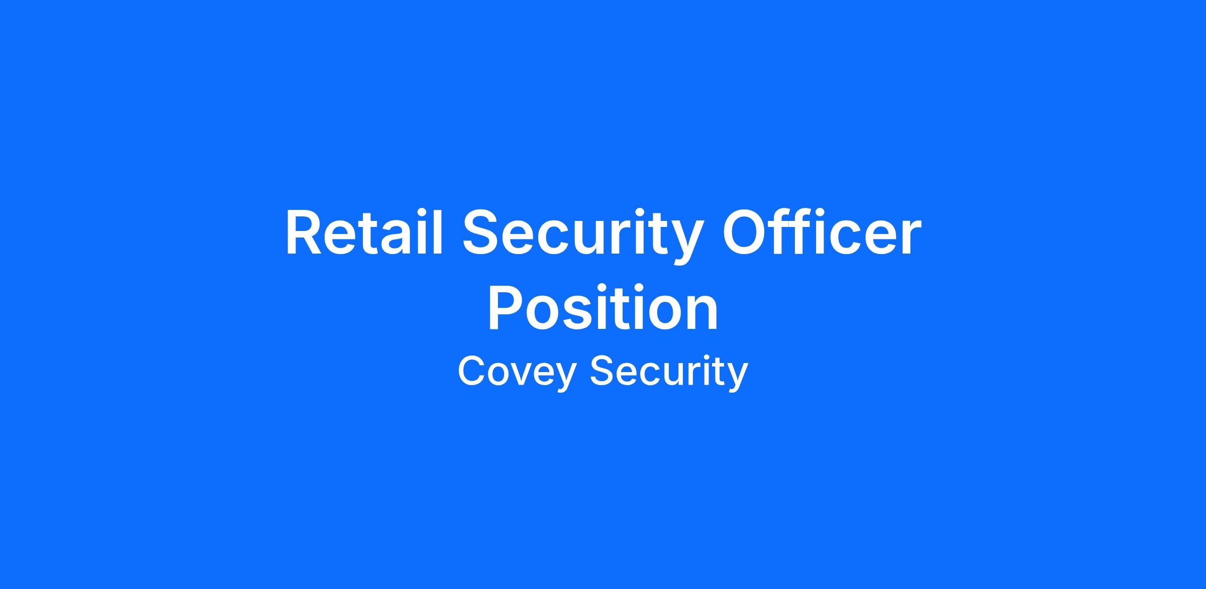 Covey Security is hiring experienced security officers for retail positions pay of $19.00 per hour.