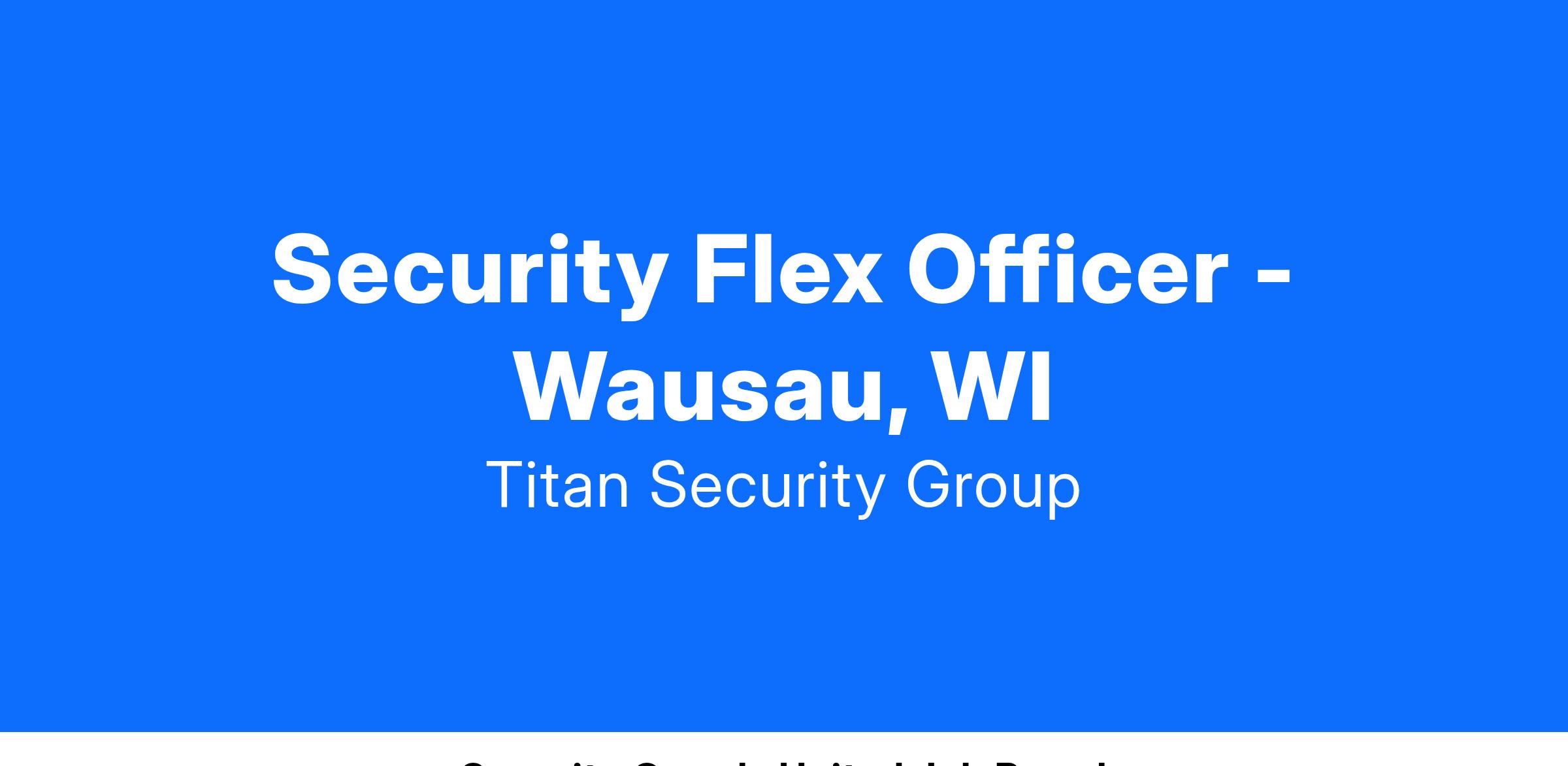 We are hiring for Unarmed Flex Security Officers to work all shifts in Wausau, Wisconsin area! All positions require candidates already have an active Wisconsin guard license/PSP.