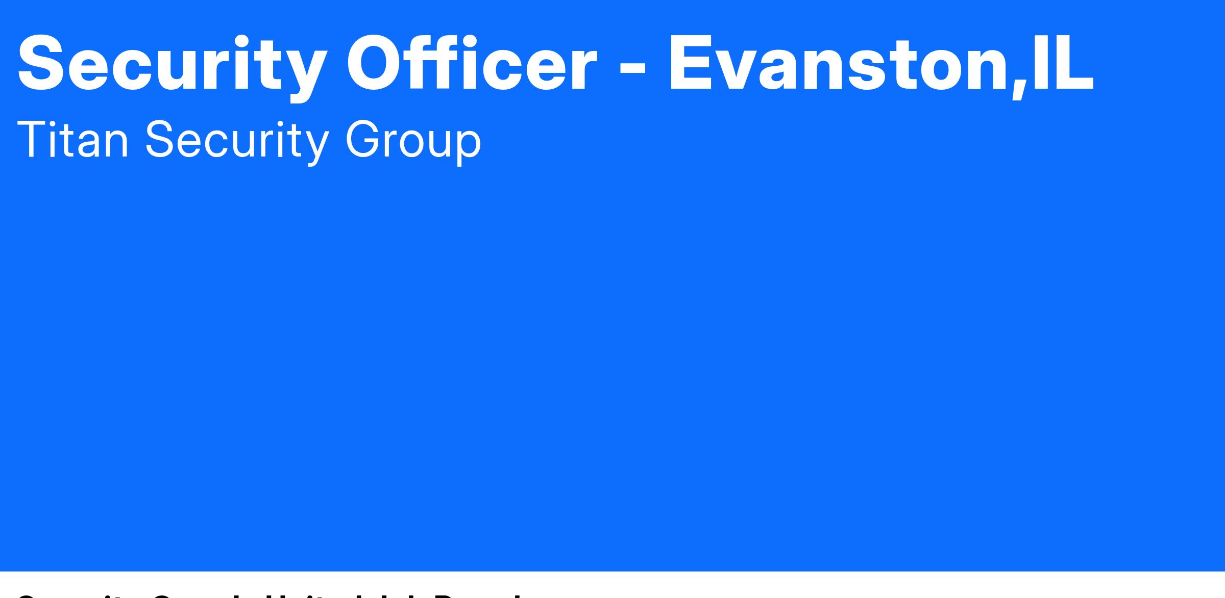We are hiring immediately for Unarmed Security Officers to work as Flex Security Officers at various locations throughout downtown Chicago. Ideal candidates will have open availability because schedules can and do change over time, and you will be needed to cover for call-offs or other issues. Titan will, however, make every effort to provide adequate notice of schedule changes.