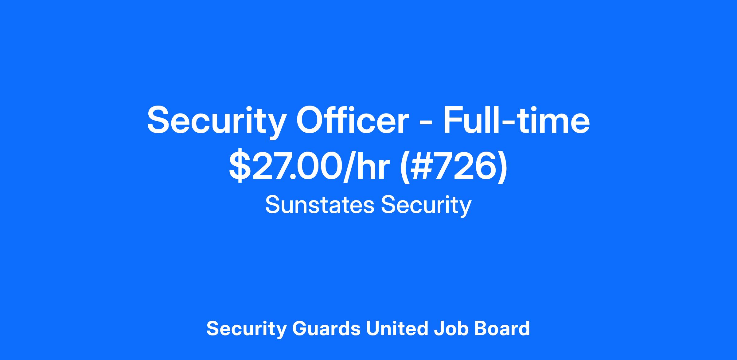 Sunstates Security is hiring for a Full-time Security Officers in the surrounding San Jose area. This position offers a pay rate of $27/hr, paid weekly.