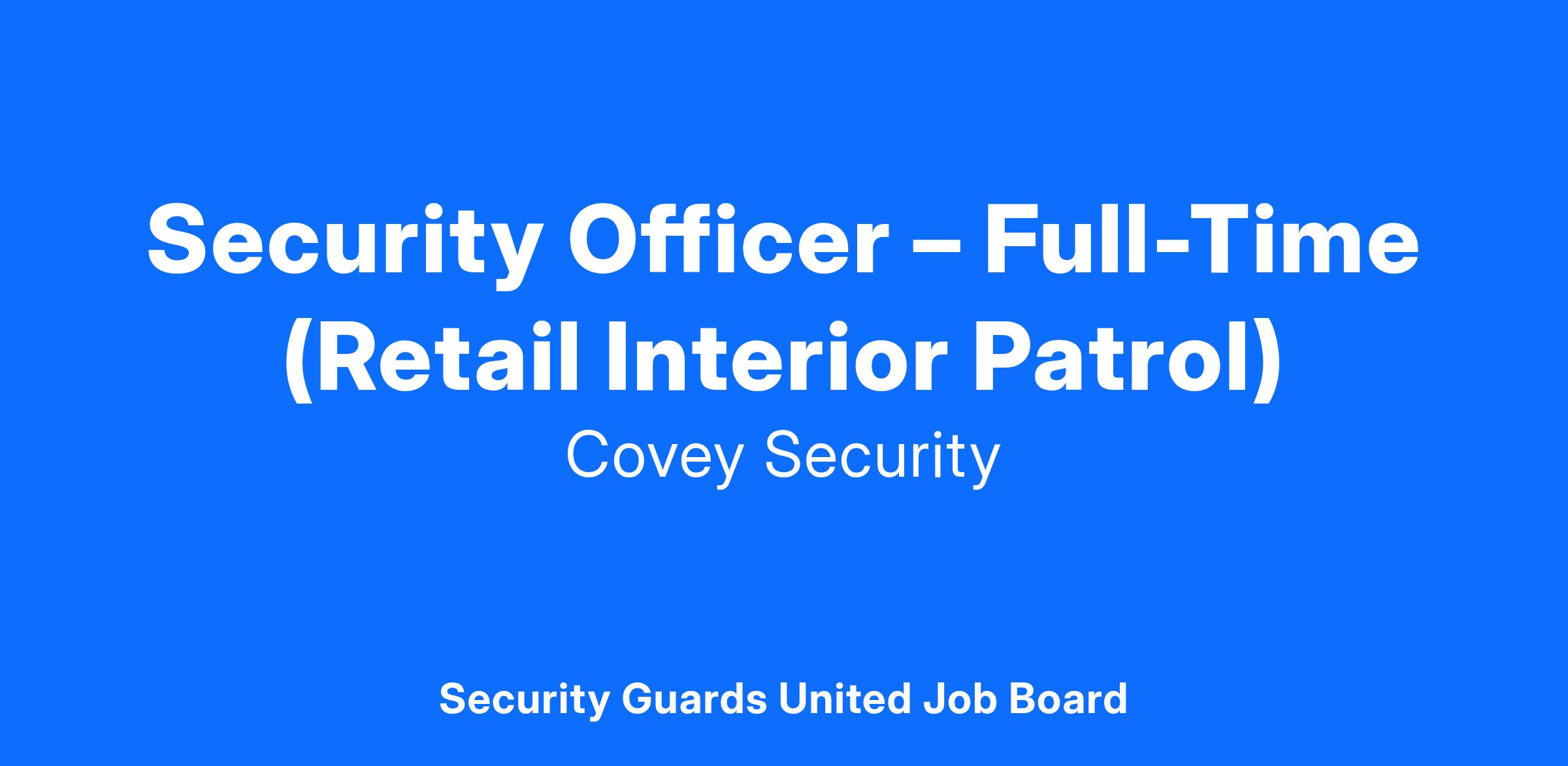 About Covey Security Covey Security is one of Arizona's leading security providers, dedicated to creating safe and welcoming environments. We're seeking professional, reliable Security Officers for full-time retail interior patrol in Flagstaff. If you're committed to upholding safety standards and working for a company that values its team members, we'd love to hear from you!