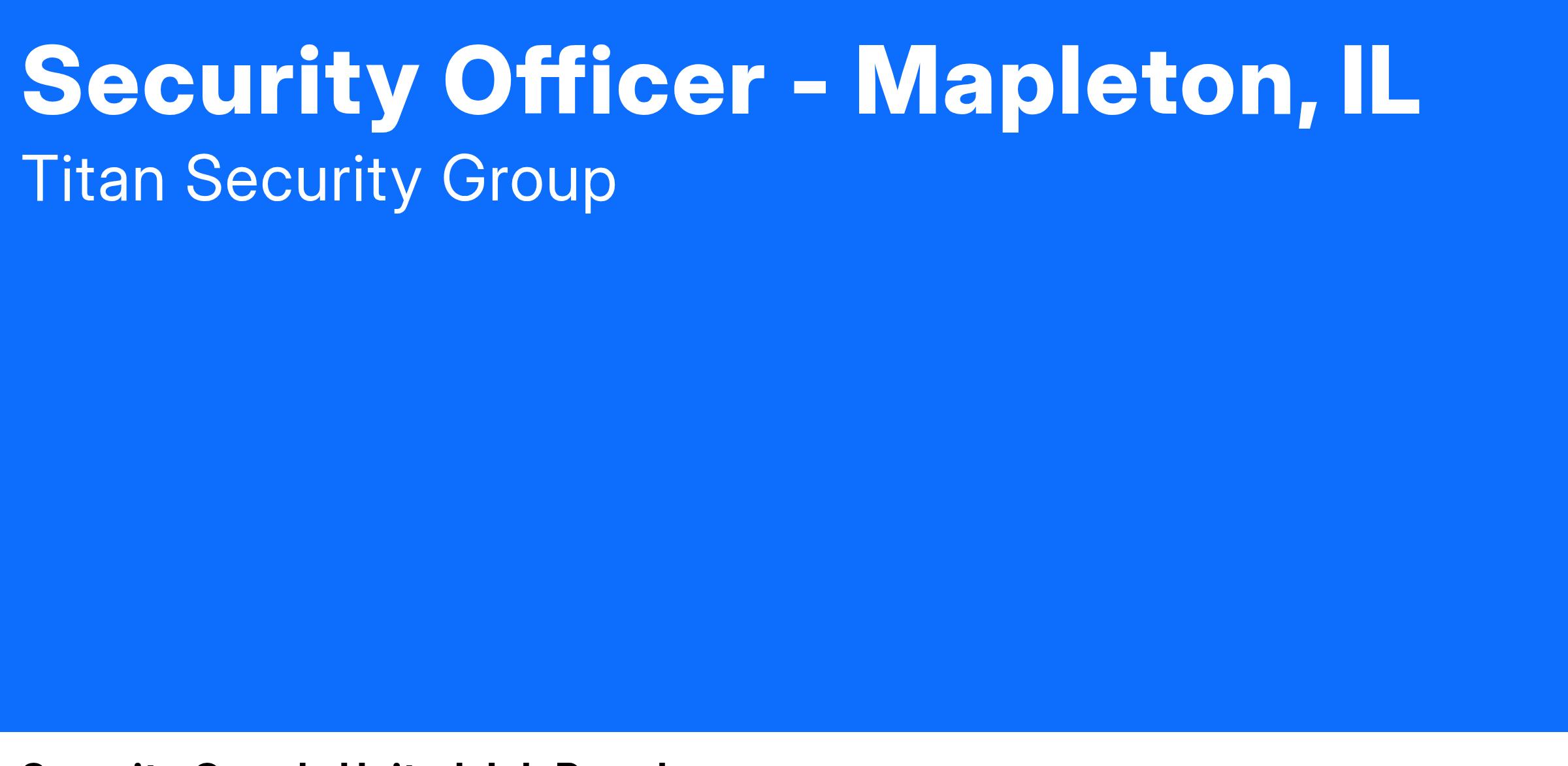 We are hiring for Unarmed Security Officers to work all shifts at buildings in Mapleton, IL.