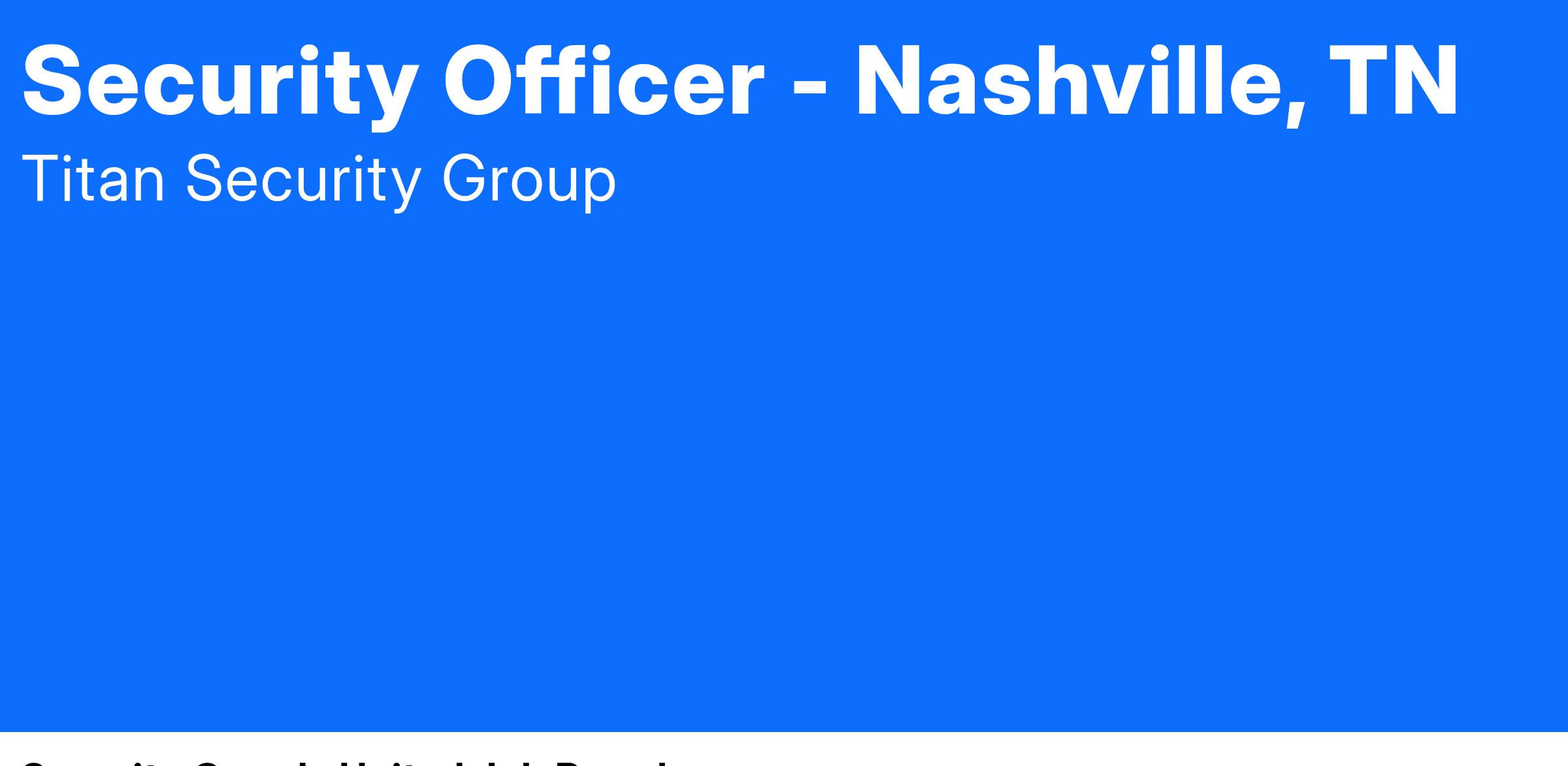 We are hiring for Unarmed Security Officers in the Nashville, TN market