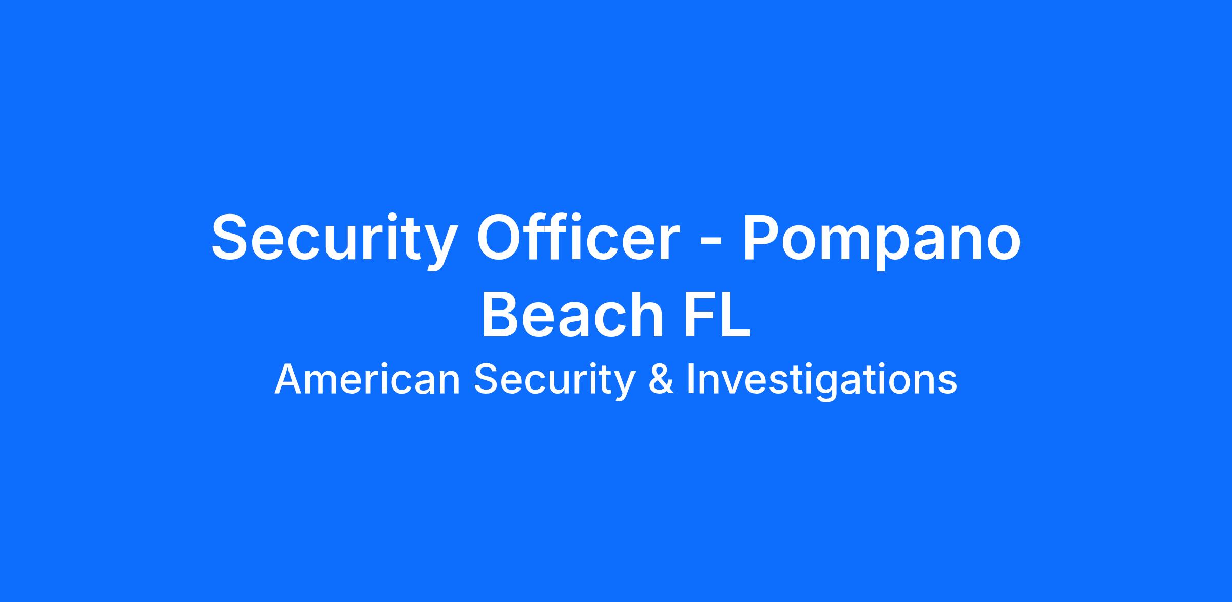 Security Officer at American Security & Investigations in Pompano Beach and Fort Lauderdale FL