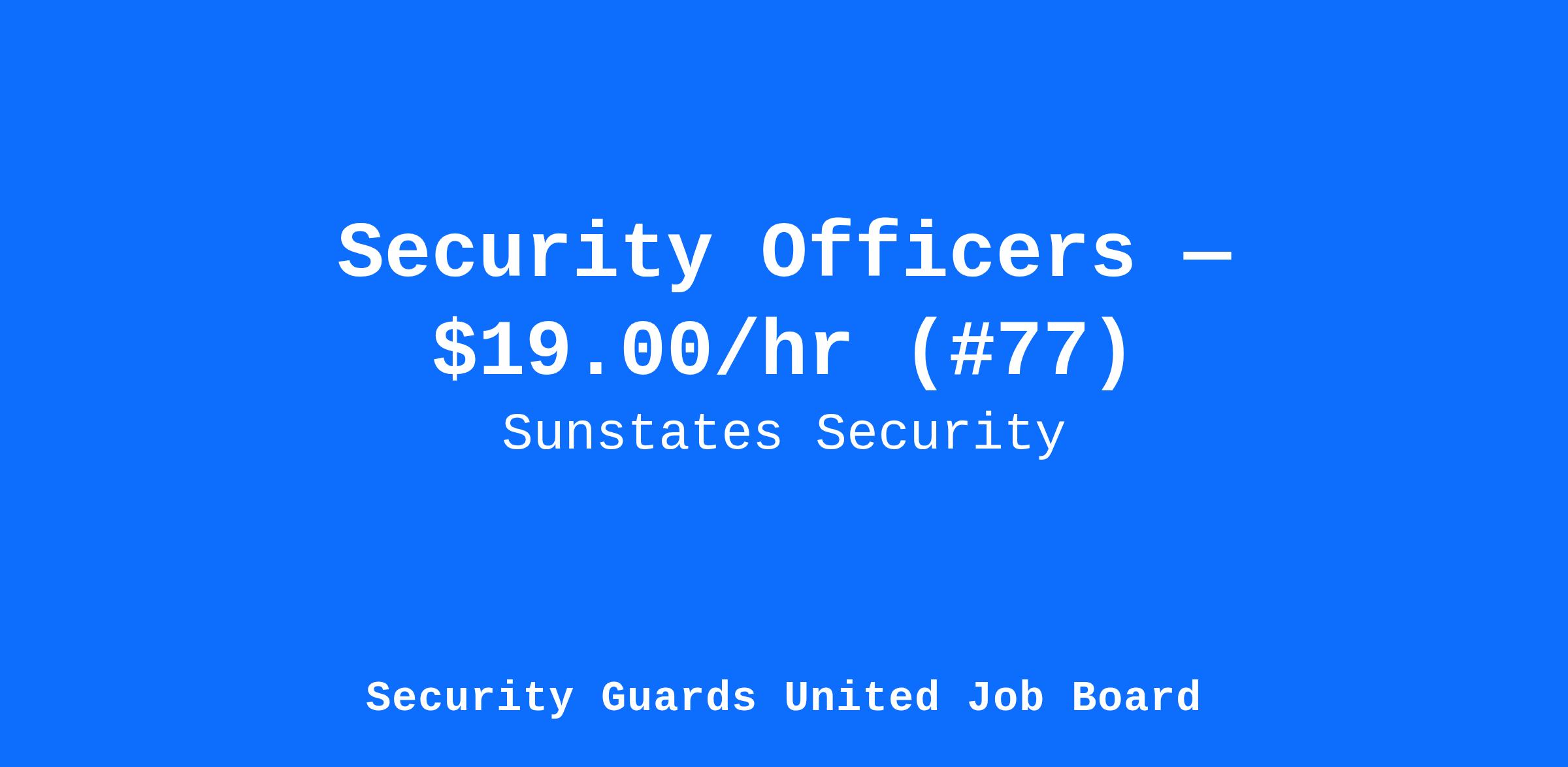 Sunstates Security is currently hiring Security Officers in the Phoenix, AZ area. This position pays $19.00/hour, paid weekly.