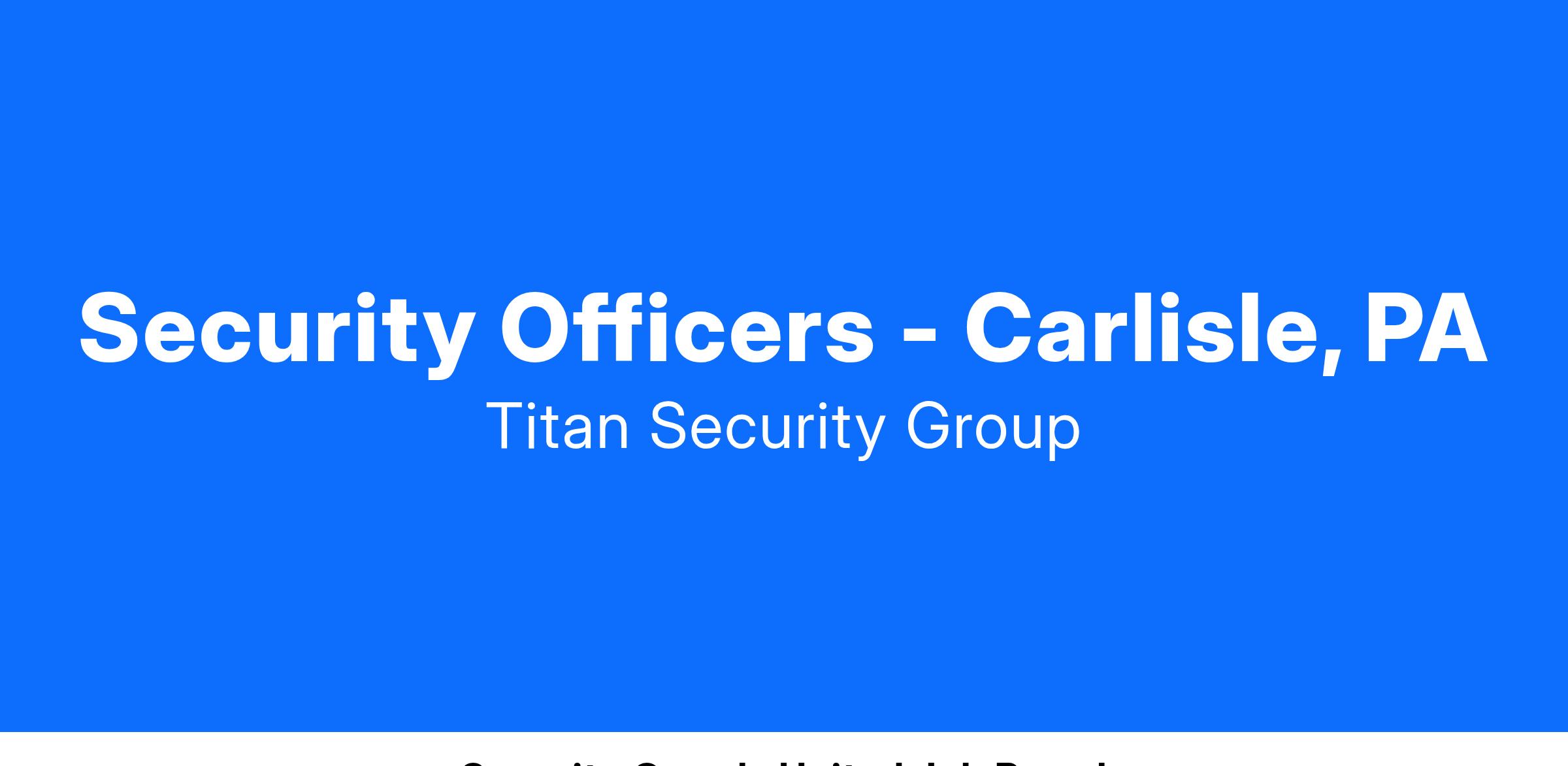 Titan Security is currently hiring for Security Officers to work at various locations throughout the Carlisle, Pennsylvania area! Shifts available include day shifts, afternoon shifts, and midnight shifts! All positions are immediately available and we offer full time or part time schedules! Apply today, work tomorrow!