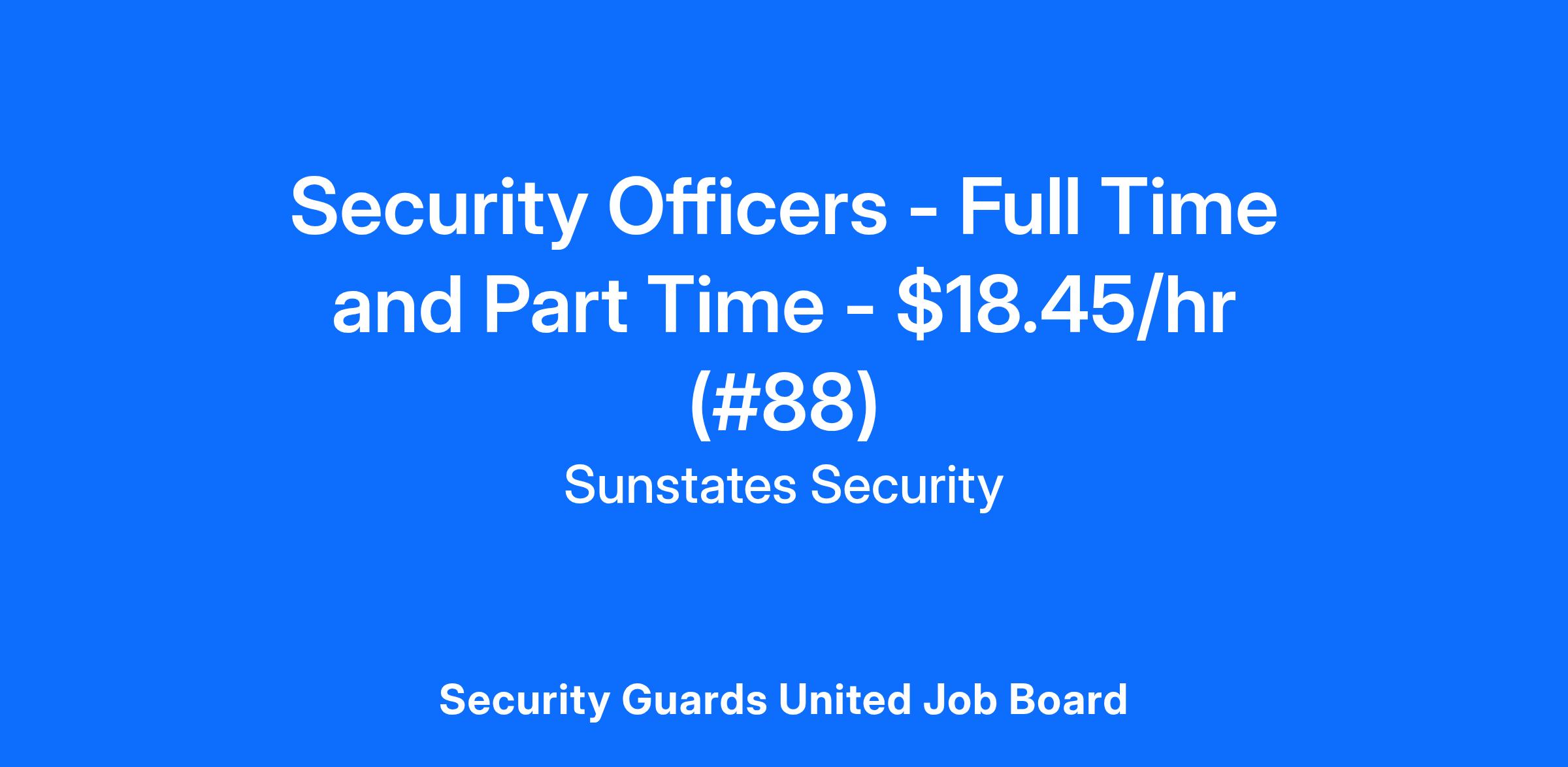 Sunstates Security is hiring Full-Time and Part-Time Security Officers for ALL shifts in the Kansas City, Kansas area. These positions offer a pay rate of $18.45/hr, paid weekly.