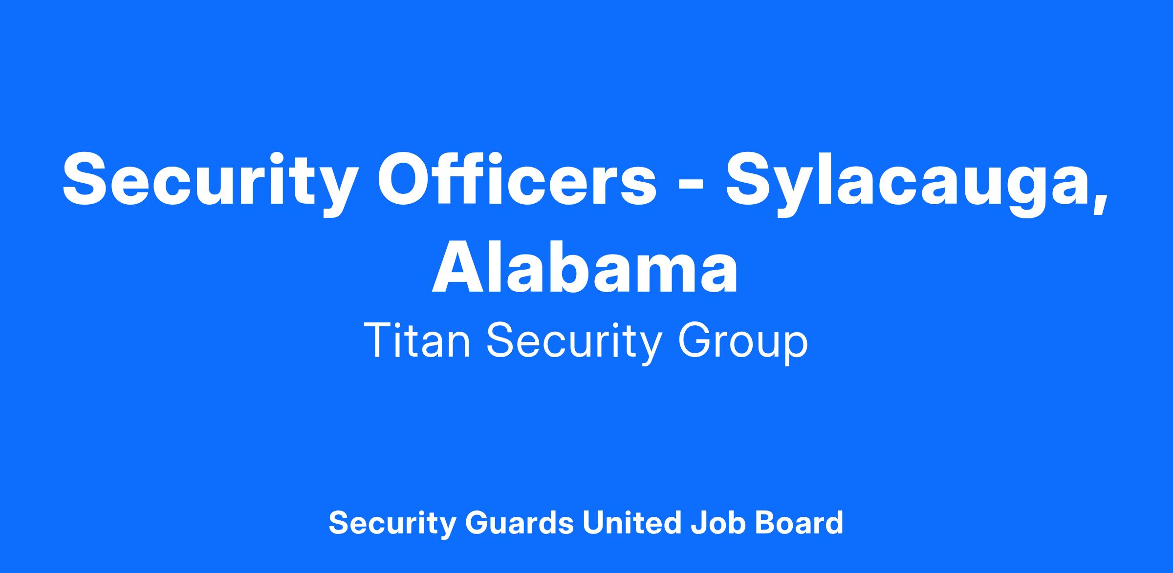 Titan Security is currently hiring for Security Officers to work at a location in Sylacauga, Alabama.