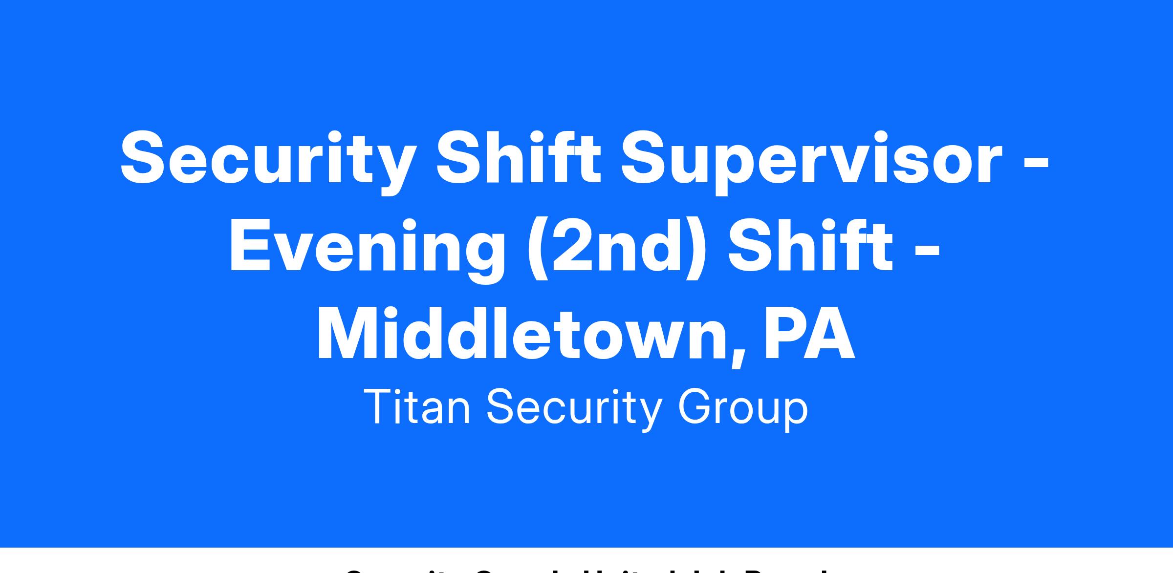 We are hiring immediately for Unarmed Security Shift Supervisors to work 2nd Shift at our site in Middletown, PA