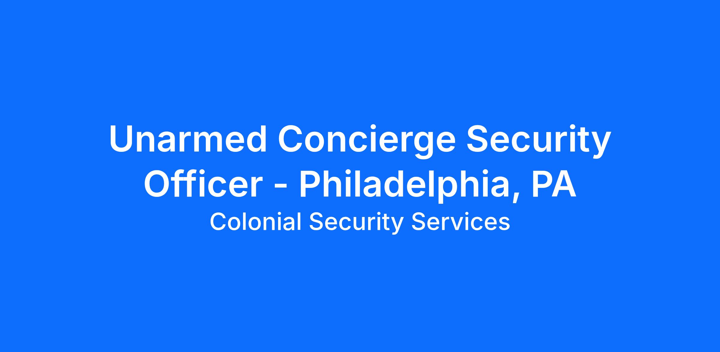 Unarmed Concierge Security Officer - Philadelphia, PA