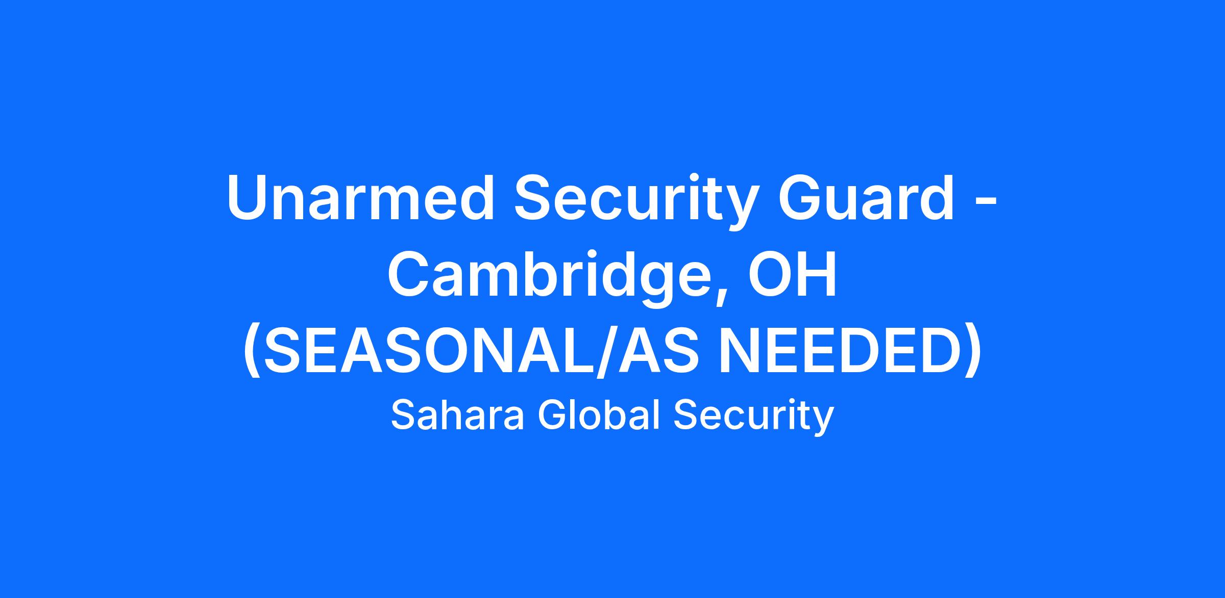This position is based out of Cambridge, OH and will report to Sahara Global Security personnel located at our Columbus Headquarters (HQ).