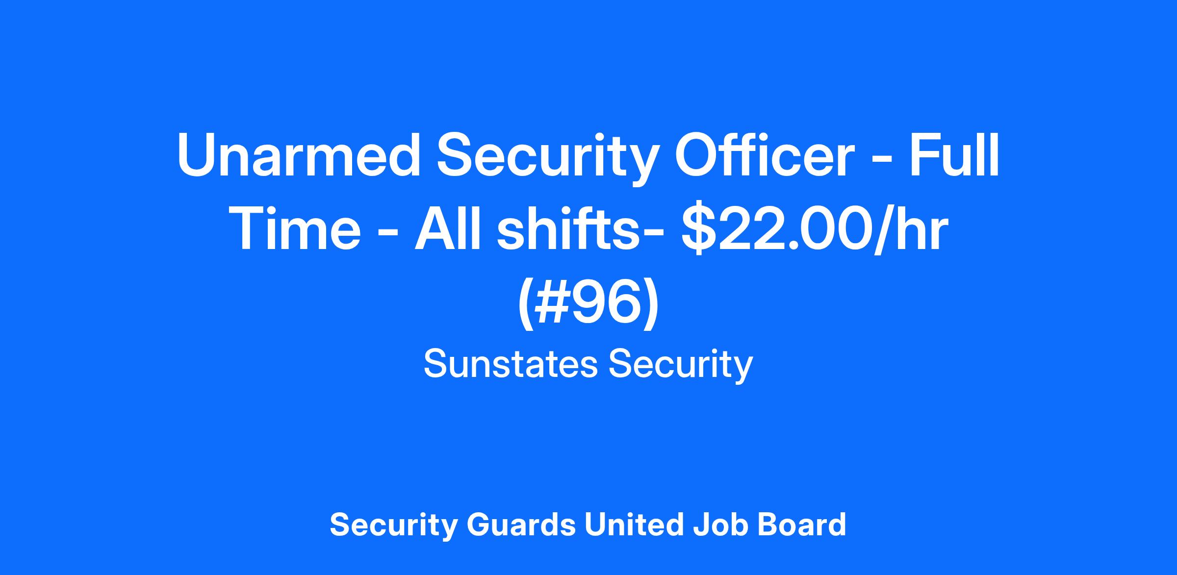 Sunstates Security is currently hiring Full-time, Unarmed Security Officers for all shifts, and all days- including weekends in the Plano, TX area. The position has a pay rate of $22.00/hr, paid weekly.