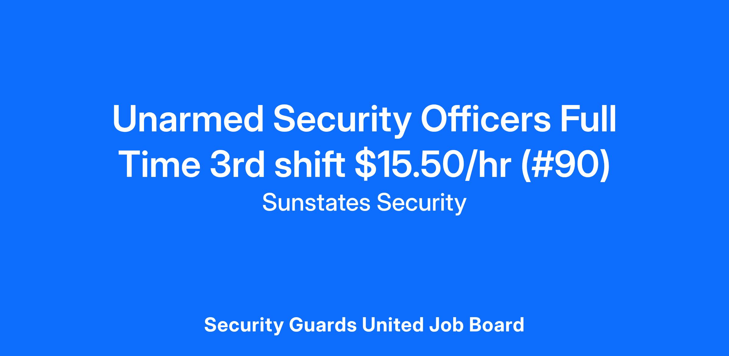 Sunstates Security is currently hiring for Unarmed Security officers in the Freeport, TX area. These positions are for Full -Time, 3rd shift and all days- including weekends. The pay rate for these positions will be $15.50/hr- paid weekly, and a full benefits package.